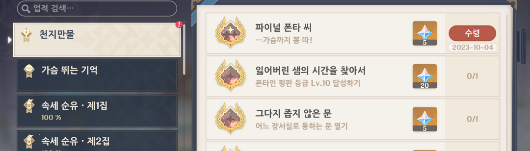'파이널 폰타 씨'는 폰타인 히든업적중 하나로 월드임무를 먼저 클리어해야 진행할 수 있습니다.