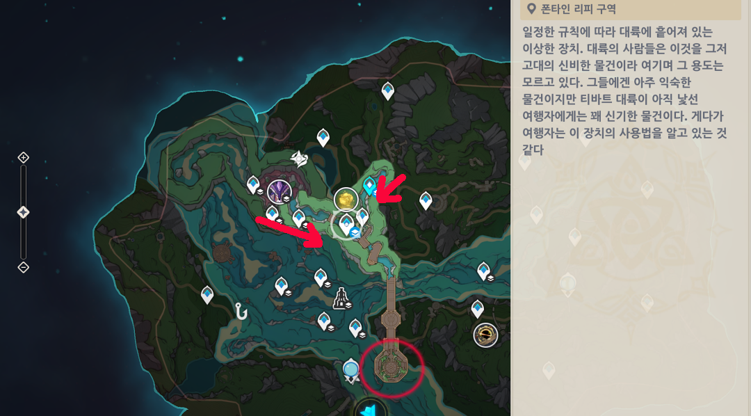참고로 신비로운 광석 7개를 모우기전 폰타인 월드 퀘스트를 모두 진행해야 들어갈 수 있는 장소들이 있기 때문에 월드 퀘스트를 진행하며 하나씩 줍기도 하지만 월드 퀘스트를 진행 후 모으는 게 좋습니다.