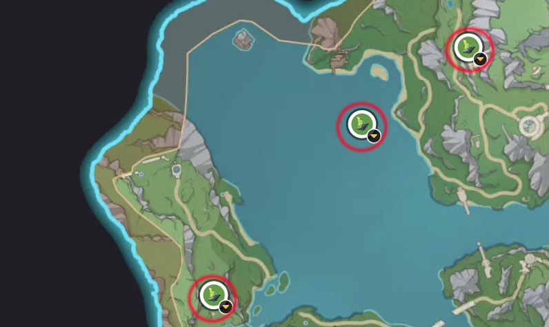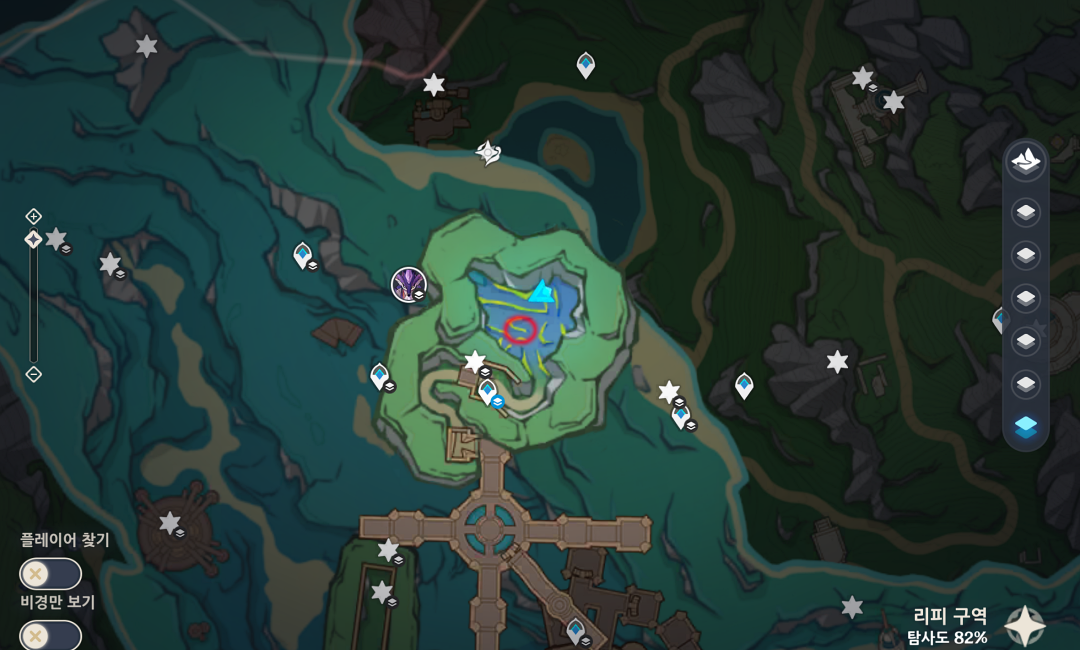 위 지도에서 보면 하나는 지하에 있으며 하나는 물큐브 속에 나머지는 지상에 있습니다. 지상에 있는 신비로운 광석 위치를 왼쪽에서 부터 1번으로 보고 2, 3번까지 지상에서 획득 지하에 있는 광석은 4번으로 하겠습니다.