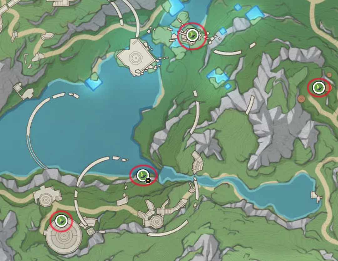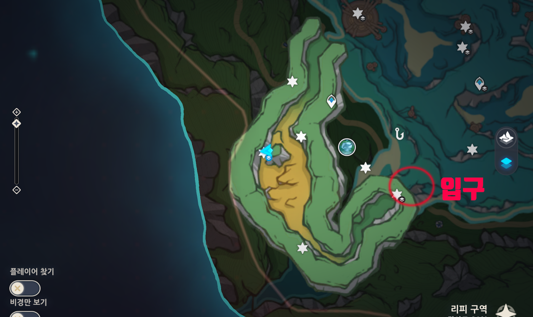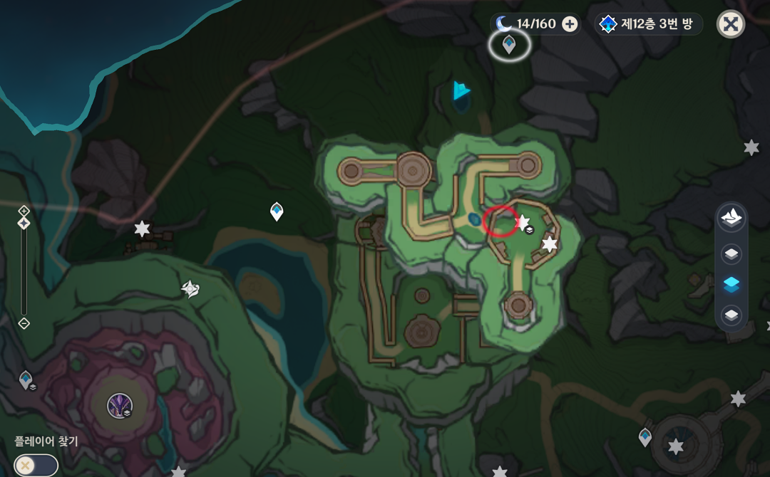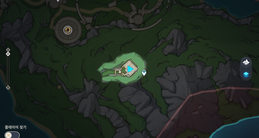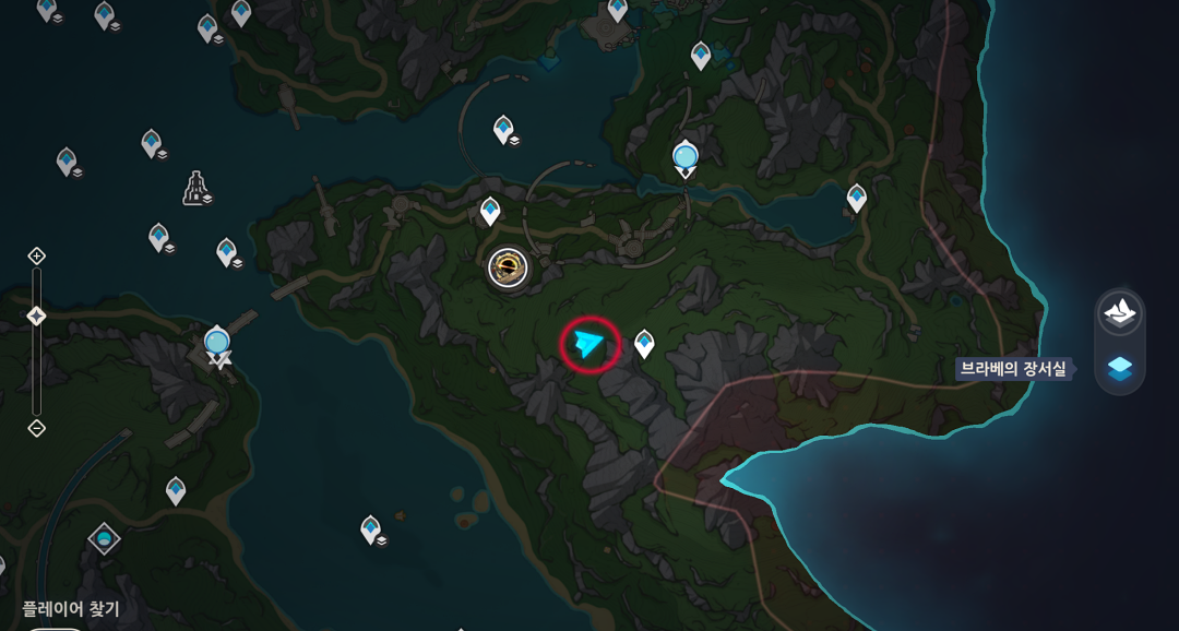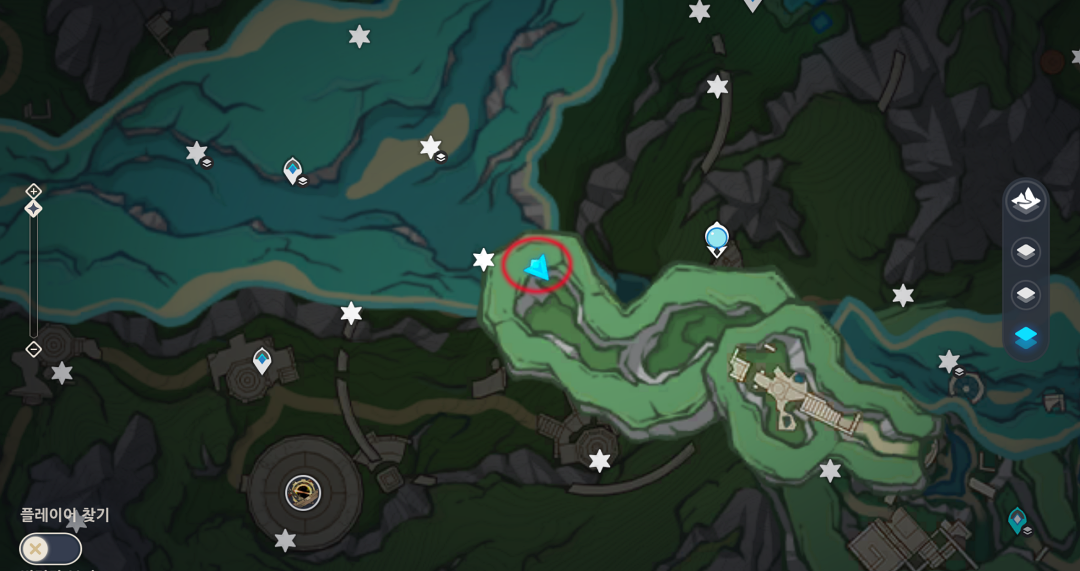 위 지도에서 보면 하나는 지하에 있으며 하나는 물큐브 속에 나머지는 지상에 있습니다. 지상에 있는 신비로운 광석 위치를 왼쪽에서 부터 1번으로 보고 2, 3번까지 지상에서 획득 지하에 있는 광석은 4번으로 하겠습니다.
