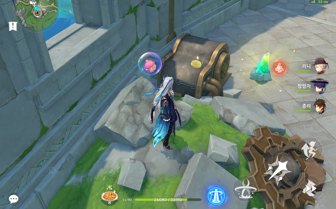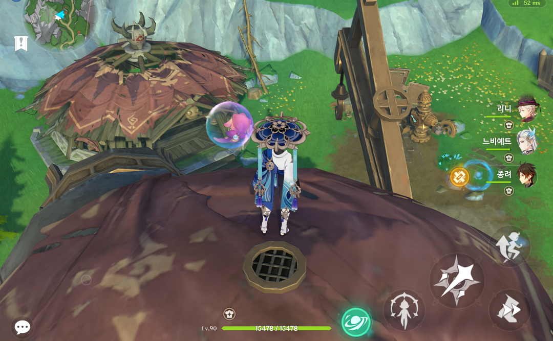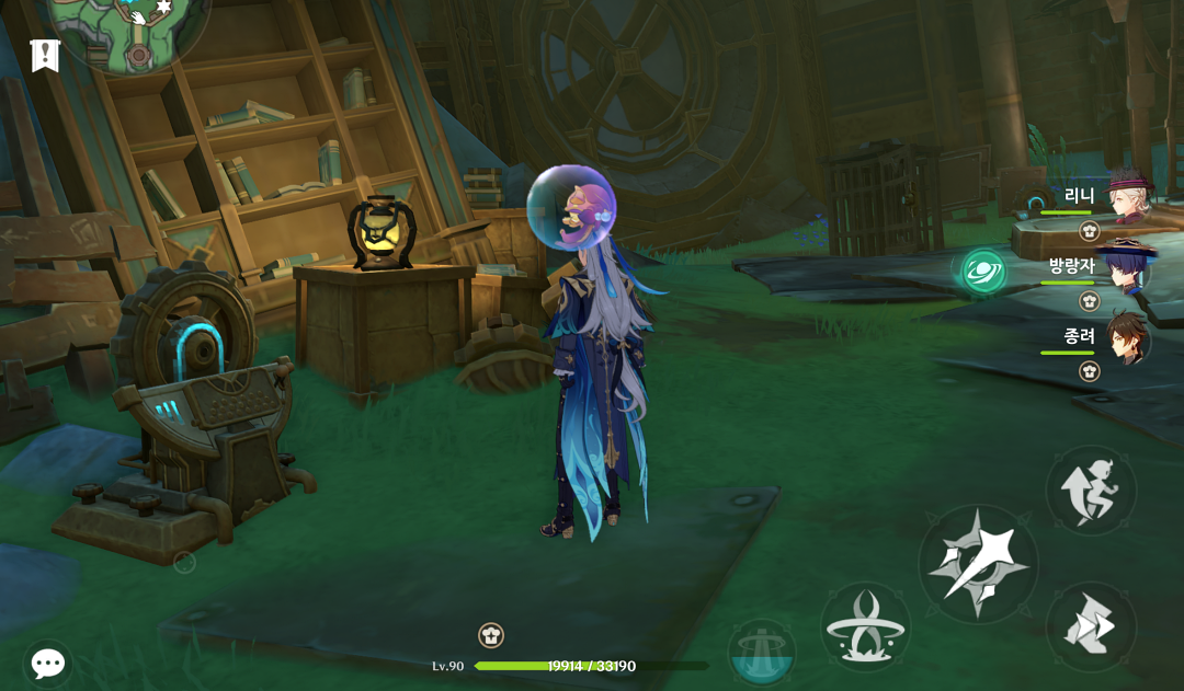 아래쪽에 있는 기계장치옆 물 포털로 진입하면 바로 기계장치 위로 이동하며 신비로운 광석을 획득할 수 있습니다.