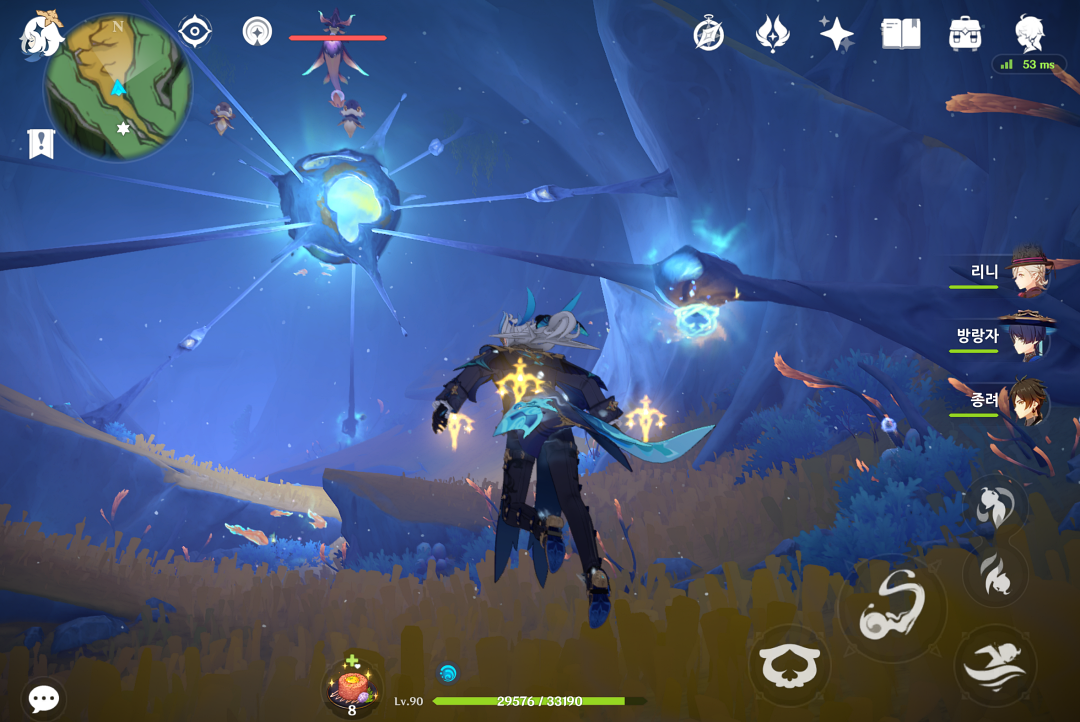 4번째 지하에 있는 광석은 '해연에 갇힌 괴리된 빛' 월드 퀘스트를 진행해야 진입할 수 있는 지하에 있으며 퀘스트 끝날 때 마지막에 해류를 타고 끝까지 나오면 신비로운 광석을 발견할 수 있습니다.