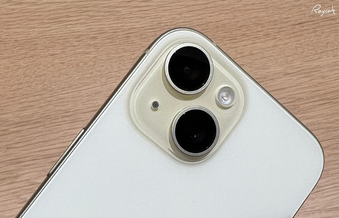 옐로 컬러의 경우 측면은 금색과 비슷한 느낌을 주는데 이번 아이폰15와 아이폰15 플러스도 카메라에 2배 망원이 탑재되며 카메라존이 좀 더 넓어졌고 플래시 부분도 이전보다 좀 더 올라와 있습니다.