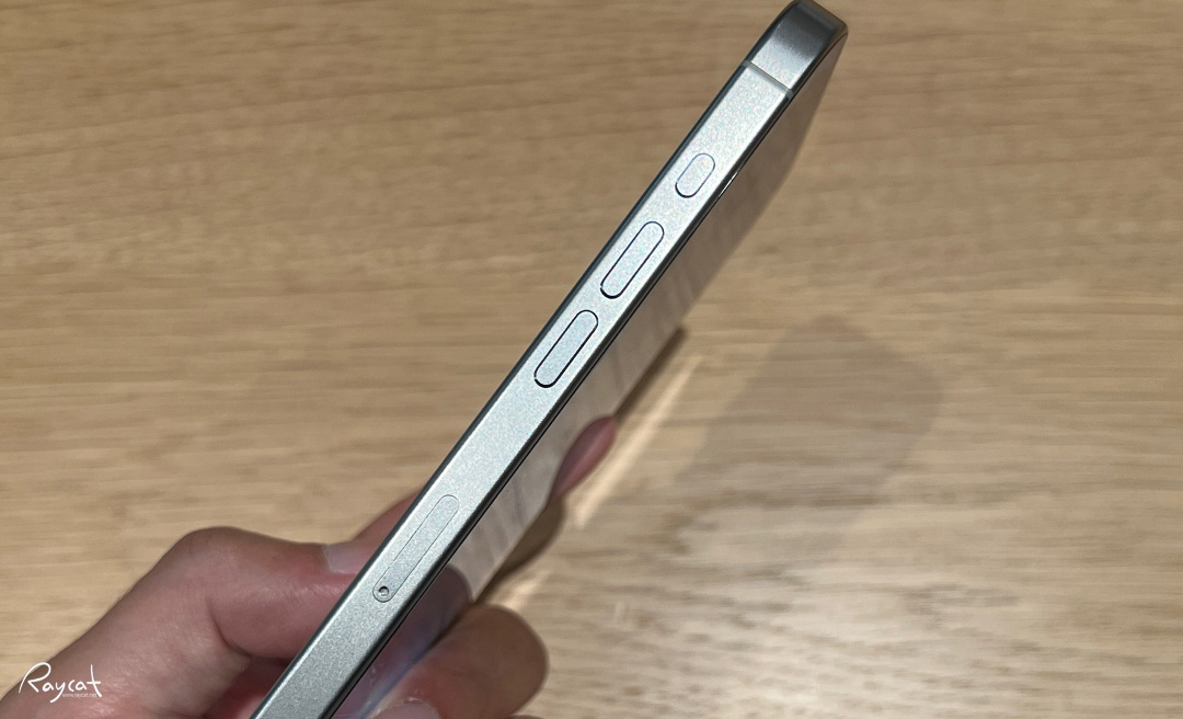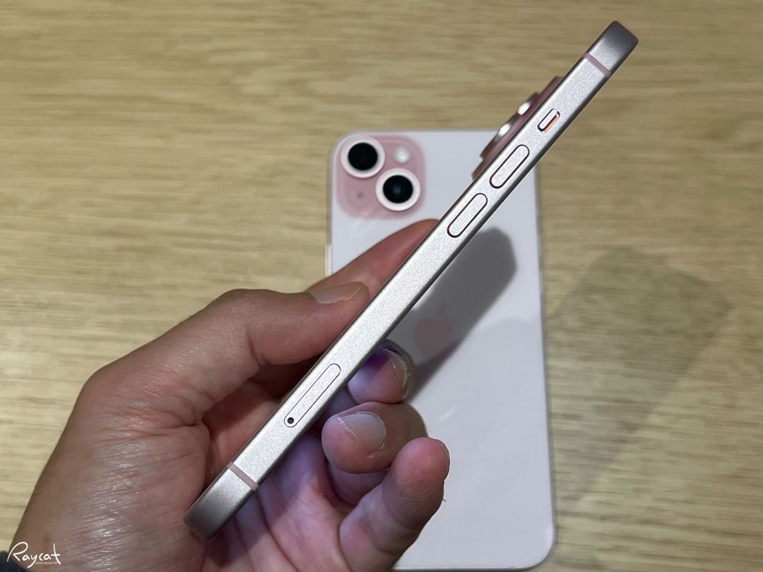 측면도 가공을 잘했는데 프로 시리즈를 보다 일반 아이폰15 모델의 측면 버튼을 보면 구형 느낌이 좀 있습니다.