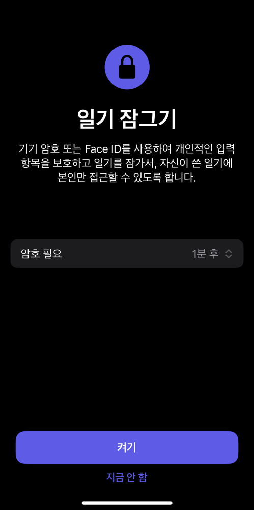 개인적으로 뭔가 기록을 하는 용도로 사용하기 앱이라 잠그기 기능을 제공하고 있습니다.