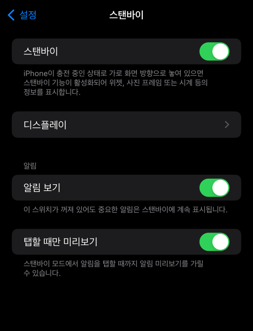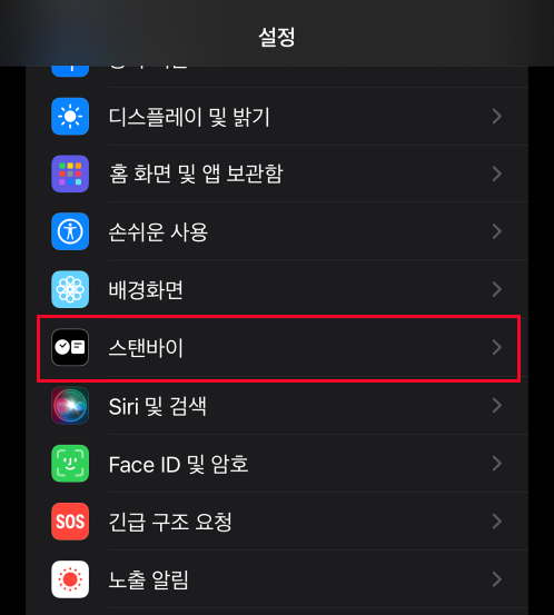 설정하는 방법은 간단한데 아이폰 설정 - 스탠바이에서 스탠바이를 켜주면 됩니다.