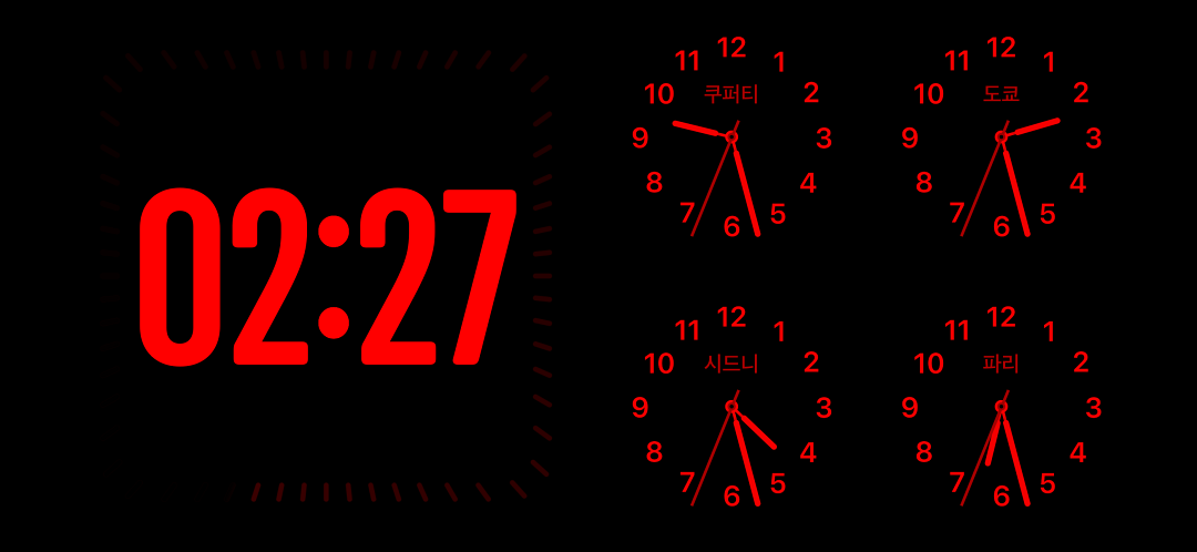 야간모드가 아닐 경우 위 사진처럼 컬러풀한 시계도 볼 수 있습니다.