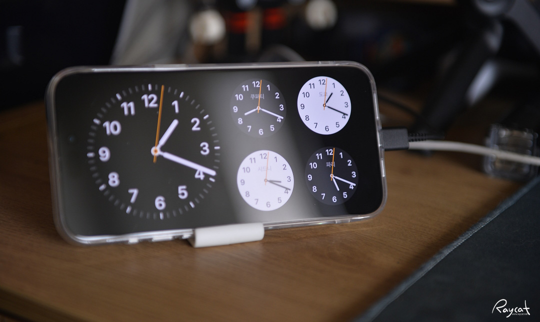시계 디자인도 여러 가지라 취향에 맞는 시계를 골라서 아이폰 스탠바이 모드를 실행해 두면 아이폰이 충전되는 동안 탁상시계처럼 사용할 수 있습니다.