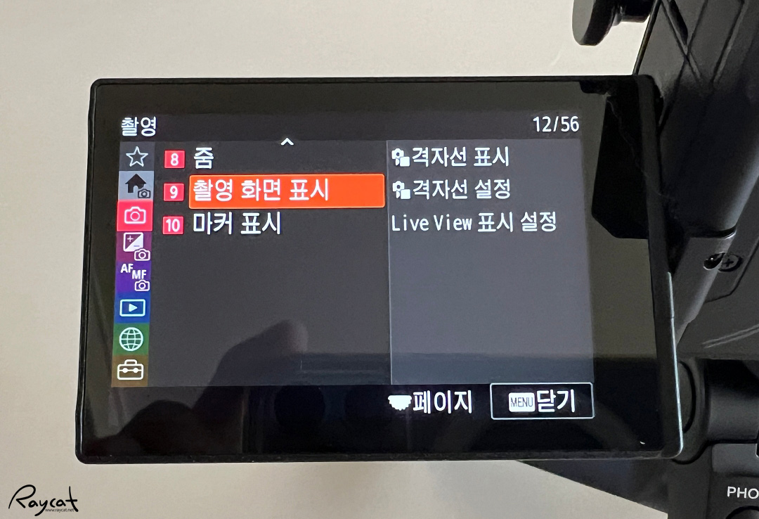 소니 A7C2의 격자선 메뉴 설정은 촬영 - 촬영 화면 표시 - 격자선 표시에 설정하면 됩니다.
