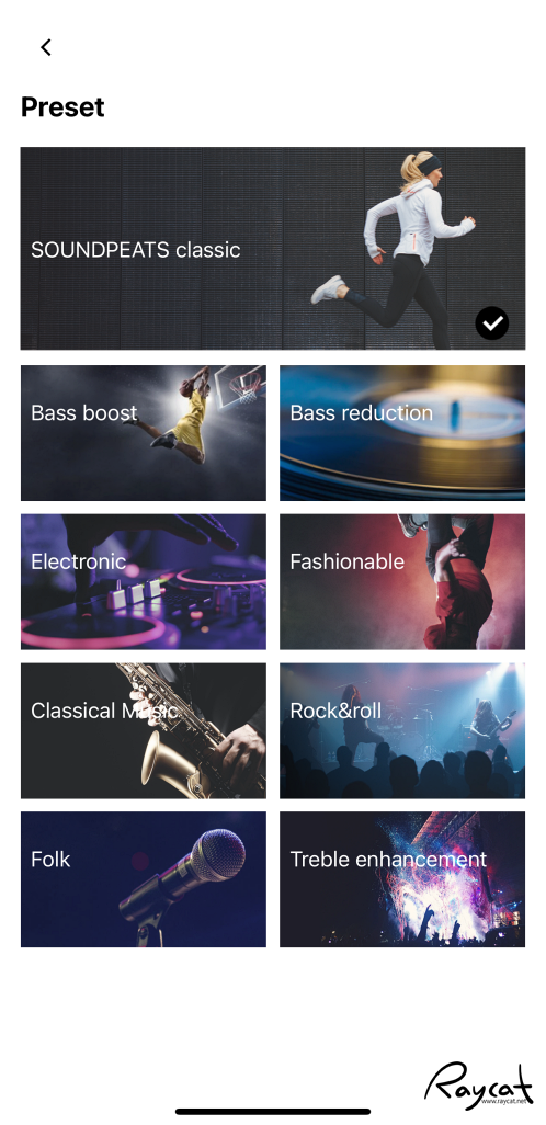 기본 이퀼라이저 세팅은 다양한 음악장르에 맞춰 제공되며 사용자가 프리셋으로 커스텀을 할 수 있습니다.