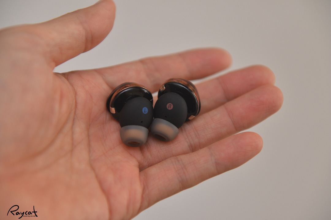 이어폰을 보면 아래쪽과 위쪽에 마이크 홀이 보이며 L, R 표시가 있습니다.