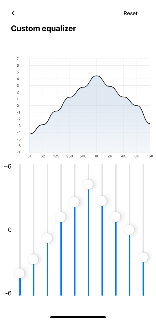 기본 이퀼라이저 세팅은 다양한 음악장르에 맞춰 제공되며 사용자가 프리셋으로 커스텀을 할 수 있습니다.