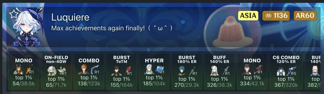 단 상위권 유저들만 보면 모두 게임을 2~3년 이상 플레이한 사람이기 때문에 초보 유저가 보기에 캐릭터의 돌파나 무기 보유도 다르기 때문에 성유물 조합만 참고하는 것이 좋습니다.