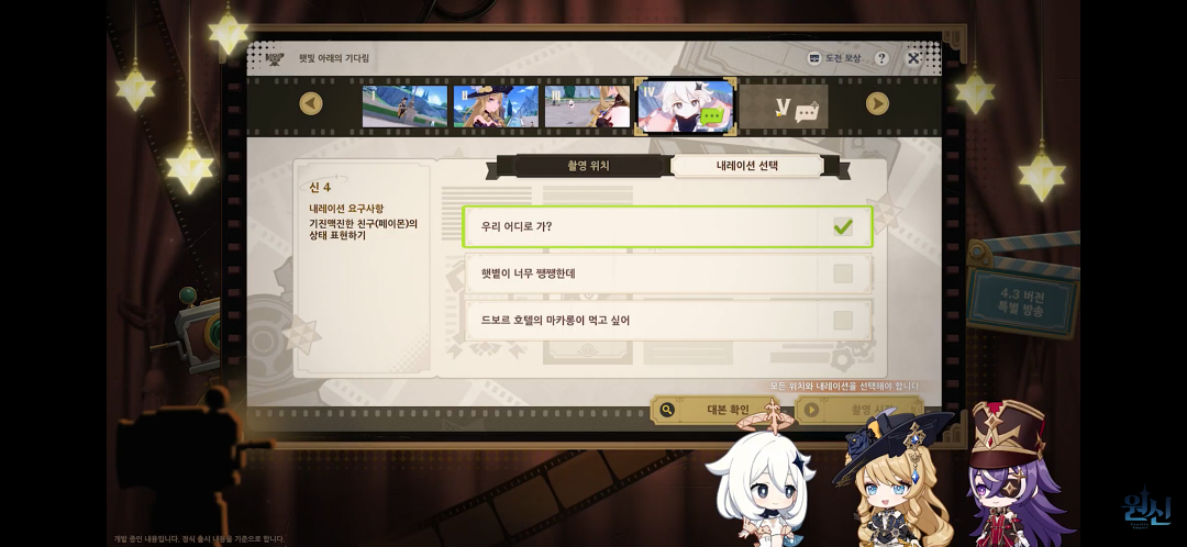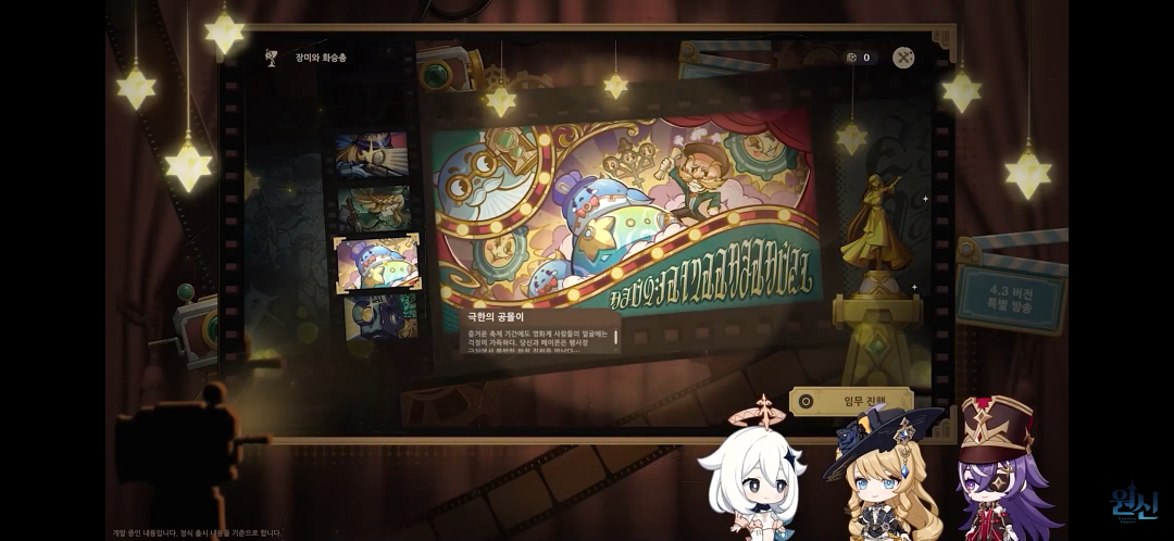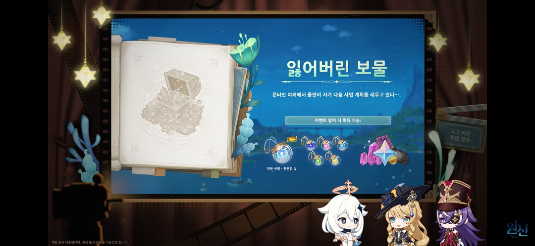 메인 스토리인 폰타인 마신 임무가 일단 끝났기 때문에 4.3 버전은 폰타인 축제가 오는 쉬어가는 버전으로 볼 수 있으며 4.4 버전은 구정을 낀 해등절이 메인이벤트가 될 것 같습니다.