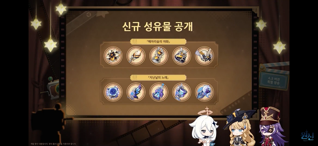 원신 4.3 버전에서 신규 성유물도 추가되는데 하나는 나비아 전용 성유물입니다.