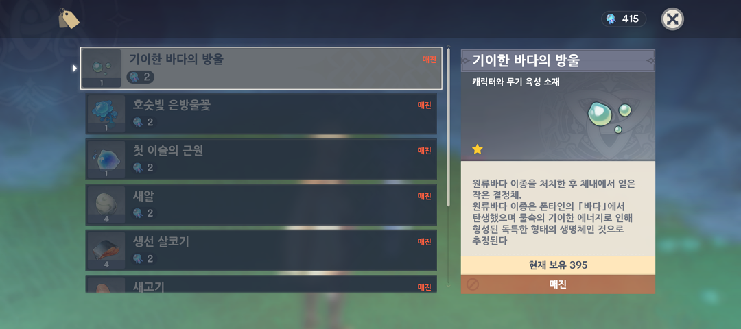 땅 위의 기믹이나 수중 기믹 그리고 숨겨진 장소의 보물상자에서 발견할 수 있는데 6개를 모두 모아서 프샤비란 멜뤼진에게 가져가면 업적이 '내일과 교환하는 내일'이라는 업적이 클리어 됩니다.