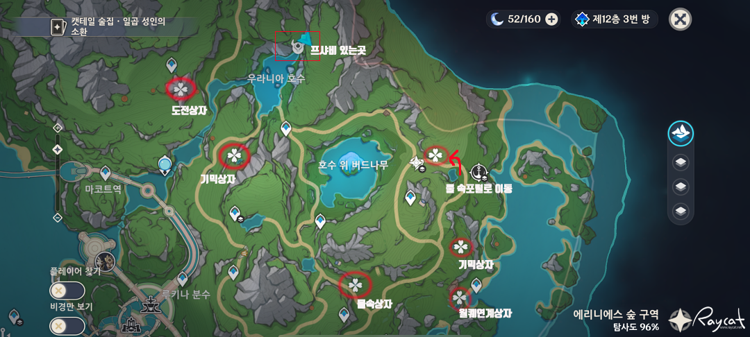 모두 에리니에스 숲 구역에 있기 때문에 기믹도 어렵지 않아서 조금만 주의해서 보면 바로 찾을 수 있으며 물속의 포털로 이동하는 비밀 장소의 상자 속에 있는것도 있습니다.