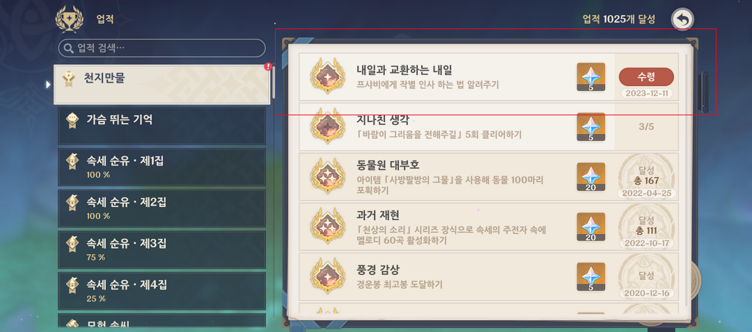 프샤비가 사라지고 '내일과 교환하는 내일' 이라는 업적이 클리어 됩니다.