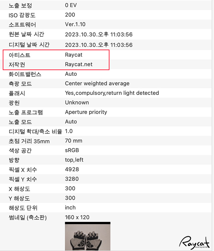 이미지 메타데이터는 여러가지 정보를 가지고 있으며 촬영날짜, 측광모드, 조리개, 초점, 화이트 밸런스등 이미지에 대한 모든 정보를 가지고 있으며 그중에 아티스트와 저작권에 대한 정보도 가지고 있습니다.