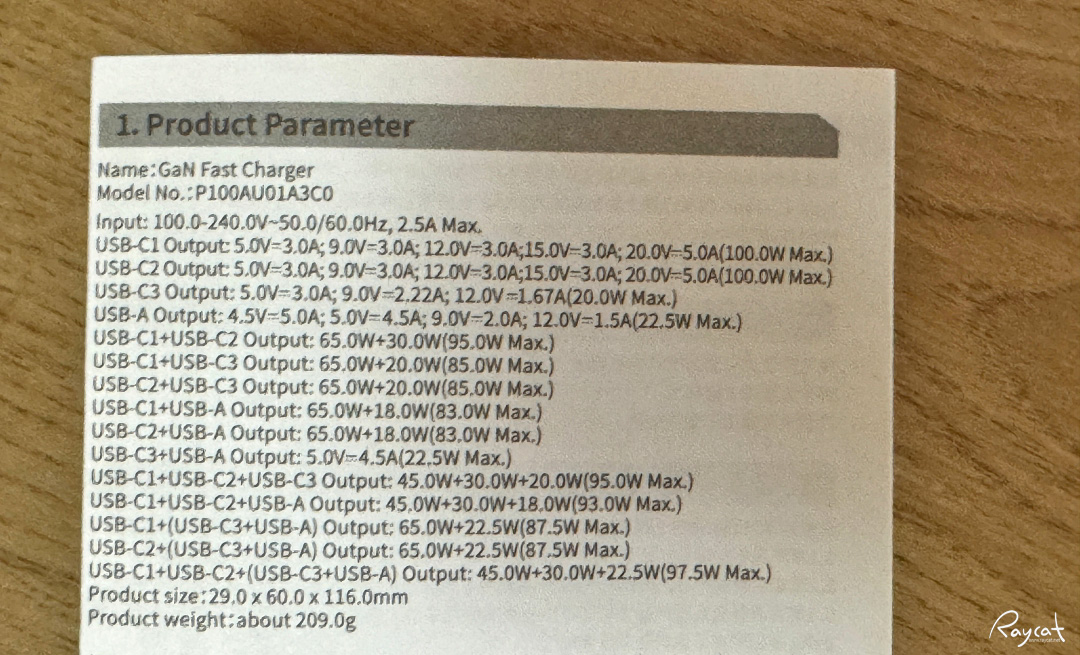 설명서에 보면 조건에 전압과 각각 포트의 최대 출력이 보이는데 USB-C1, USB-C2 포트는 최대 100W, USB-C3는 20W, USB-A 포트는 최대 22.5W 출력을 지원합니다.