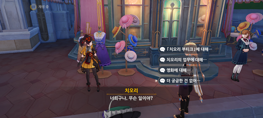 폰타인 성 치오리 부티크 앞으로 가보면 치오리가 가게 앞에 서있습니다. 원래 치오리가 운영하던 가게죠.