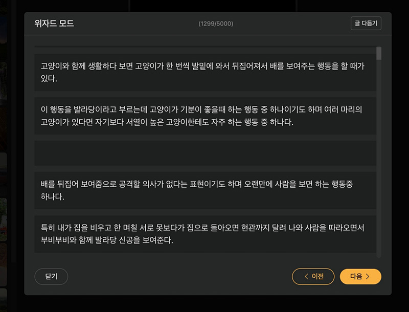 URL을 입력하면 본문에 있는 텍스트를 저렇게 가져오는데 위쪽의 '글 다듬기'를 눌러서 필요 없는 텍스트는 지우고 아무래도 블로그에 작성한 글이다 보니 텍스트가 많기 때문에 글을 요약하고 줄여봅니다.