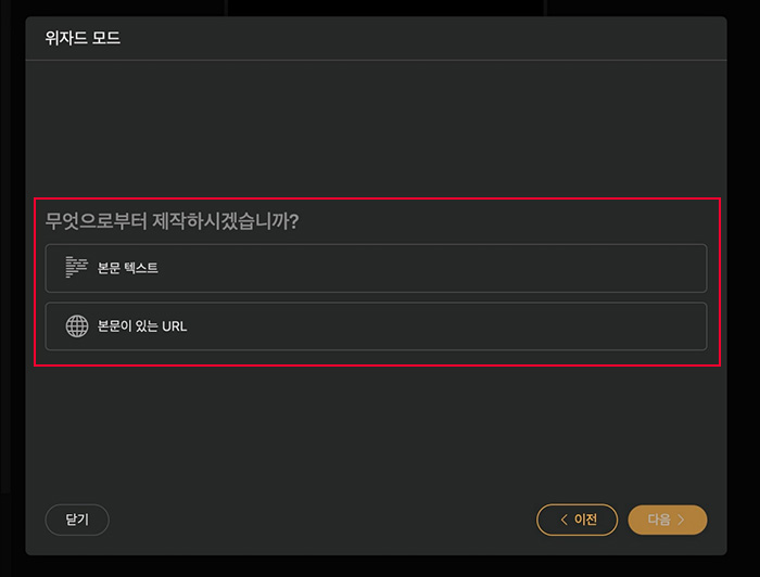 참고로 비디오스튜는 블로그에 작성해 둔 글로 영상을 만들 수 있는데 블로그에 있는 글로 영상을 만든다면 URL을 입력해 주면 됩니다.