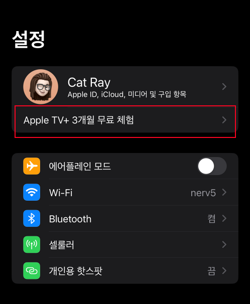 보통 기기를 내 애플ID로 활성화하고 iCloud까지 연동하고 2주에서 1개월 정도 사용하면 계정 정보 아래에 '애플 TV+ 3개월 무료 체험'이 나오는데 이 항목을 탭 하면 언제까지 활성화되는지 보여줍니다.