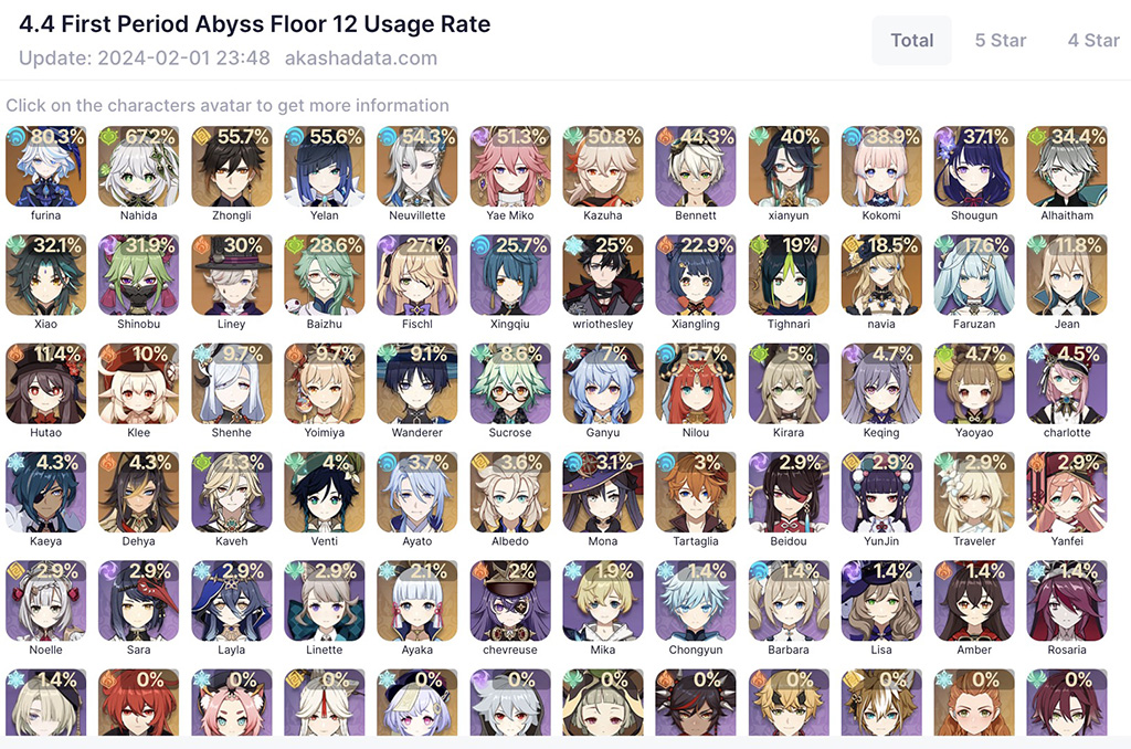 아직 이번 나선비경이 시작한게 하루도 되지 않았기 때문에 데이터가 적지만 푸리나, 나히다, 종려, 야란, 느비예트가 픽률이 올랐고 특히 야에 미코의 경우 픽률이 많이 올라왔습니다.