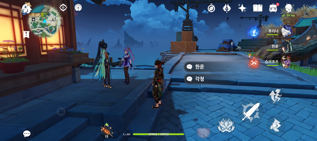 이번 스토리에서 가명뿐 아니라 한운의 매력도 참 많이 느껴지는 이벤트 였는데 리월항 대장간 뒤쪽에 가보면 각청과 한운이 대화를 나누고 있는 모습을 볼 수 있습니다.