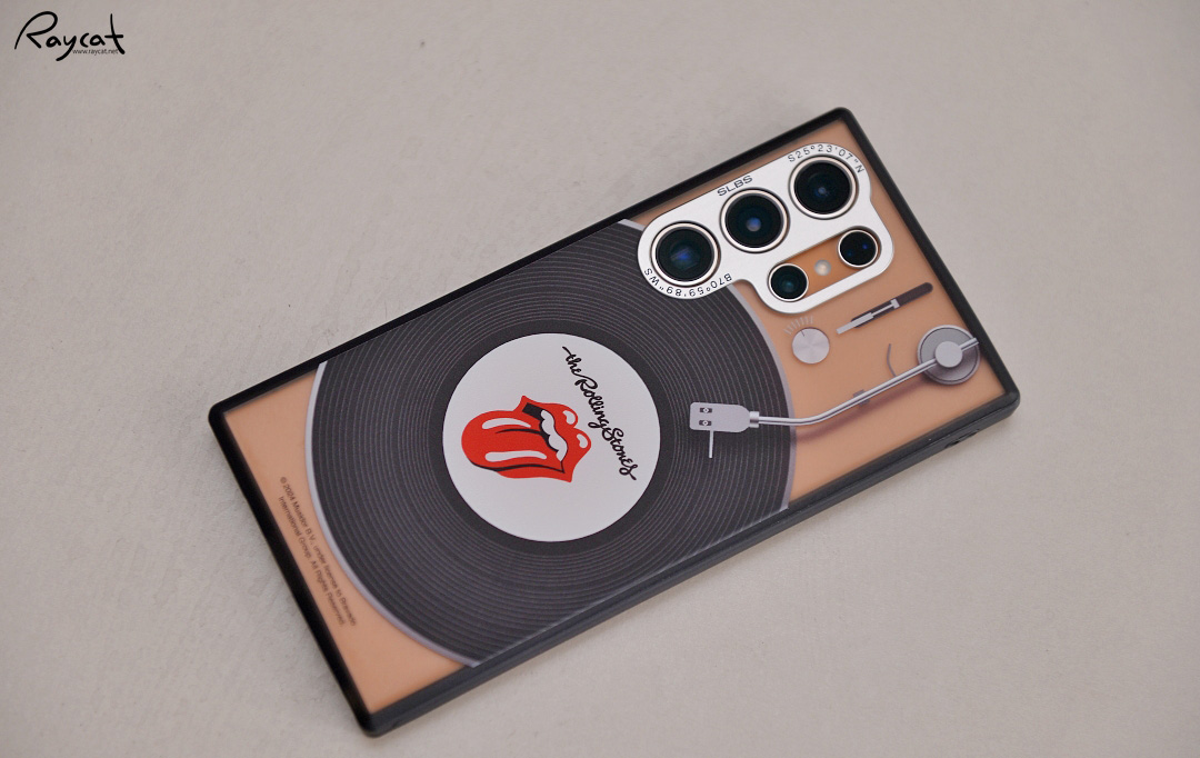 일반적으로 스마트폰 케이스에 많이 사용하는 소재로 후면의 롤링스톤즈를 상징하는 그림과 턴테이블 디자인이 가장 큰 특징입니다.