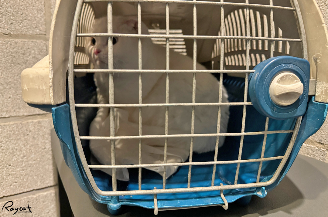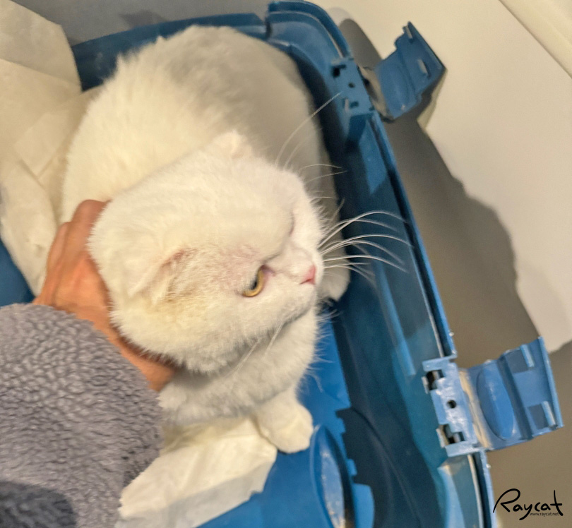병원 가는 동안 이동장 안에서 울부짖다가 병원 대기실에 도착하면 모든걸 포기했는지 조용해진다.
