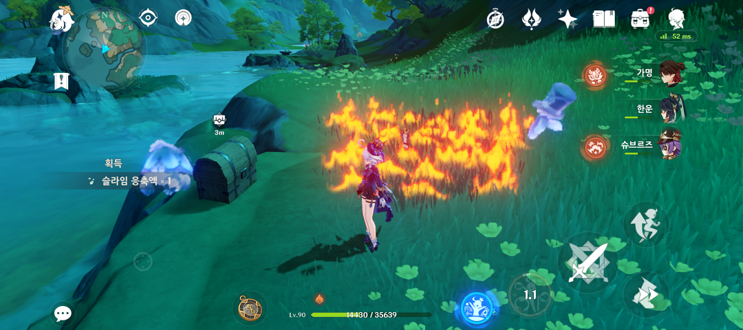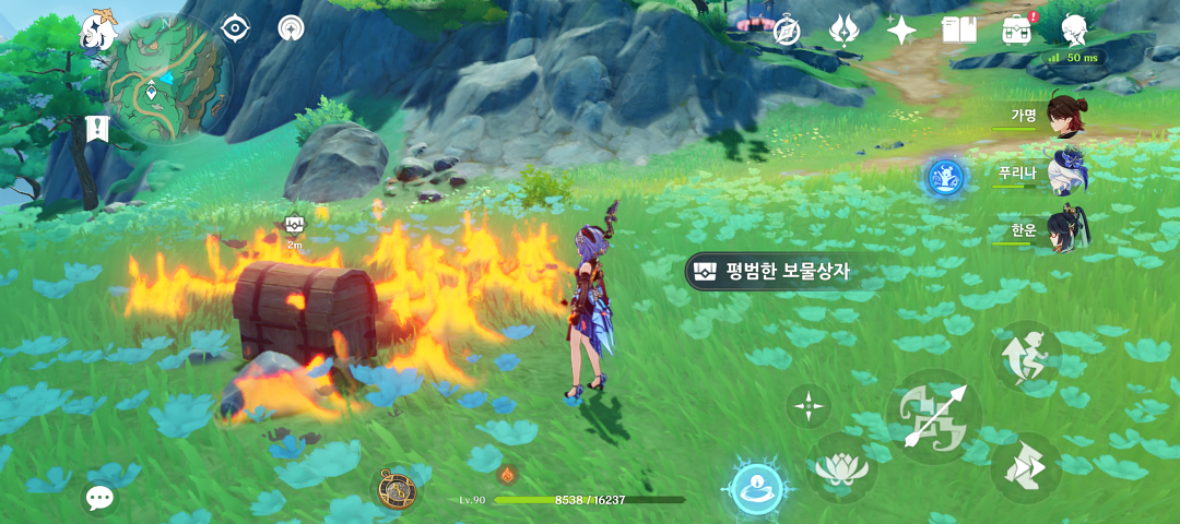 화염꽃이 꺼질 때마다 등장하는 불 슬라임을 모두 처리하면 마지막에 평범한 보물상자가 나옵니다.