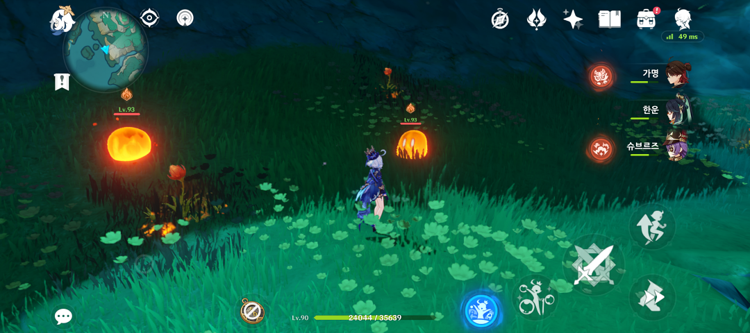 위 지도의 워프를 타고 바다 쪽으로 가면 화염꽃 군락지를 만날 수 있습니다. 여기서 화염꽃을 건드리면 불 슬라임이 올라옵니다.