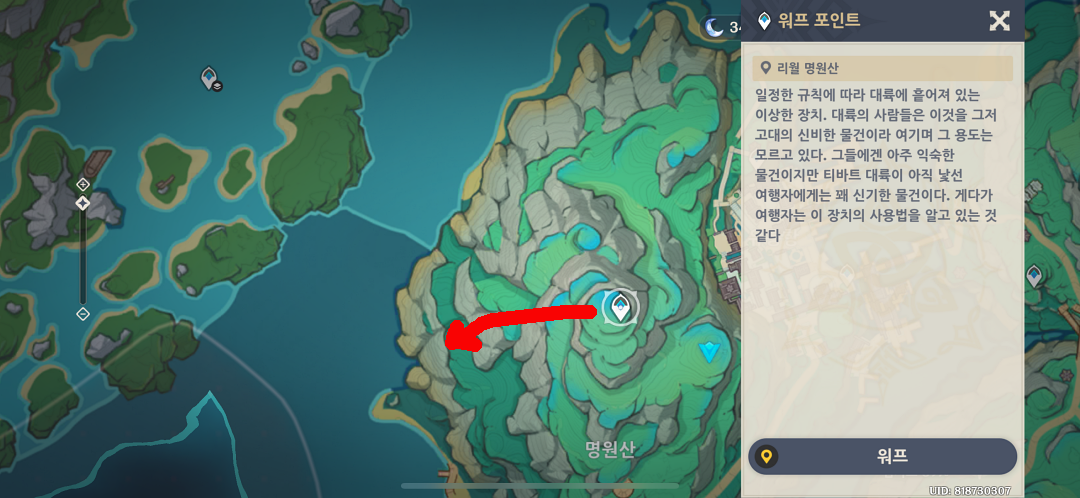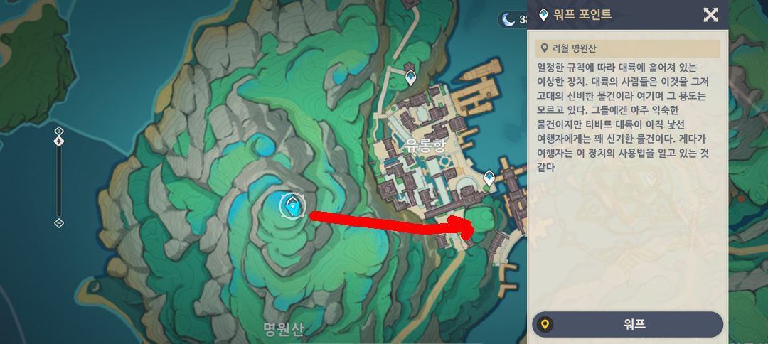 보물상자를 획득했다면 다시 방금 온 명원산 꼭대기의 워프로 이동합니다.