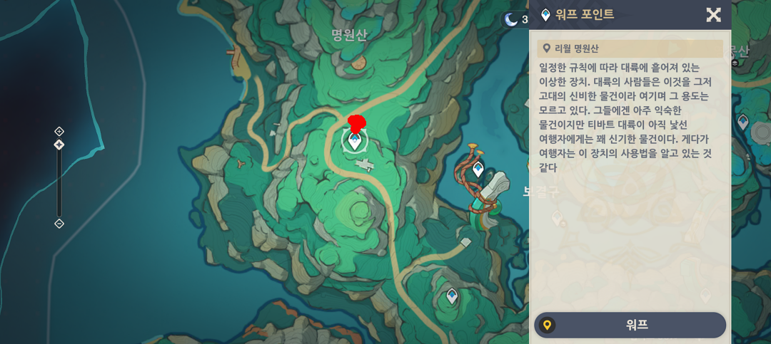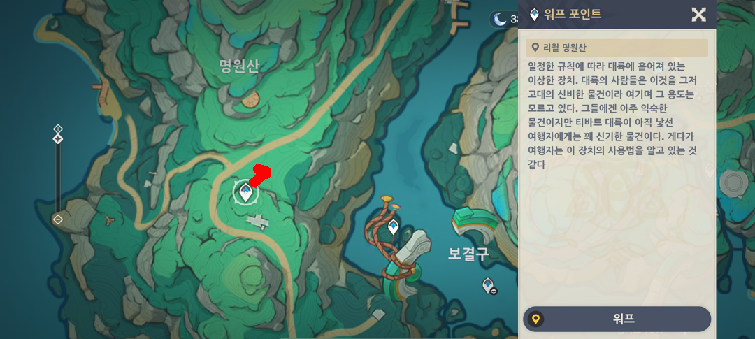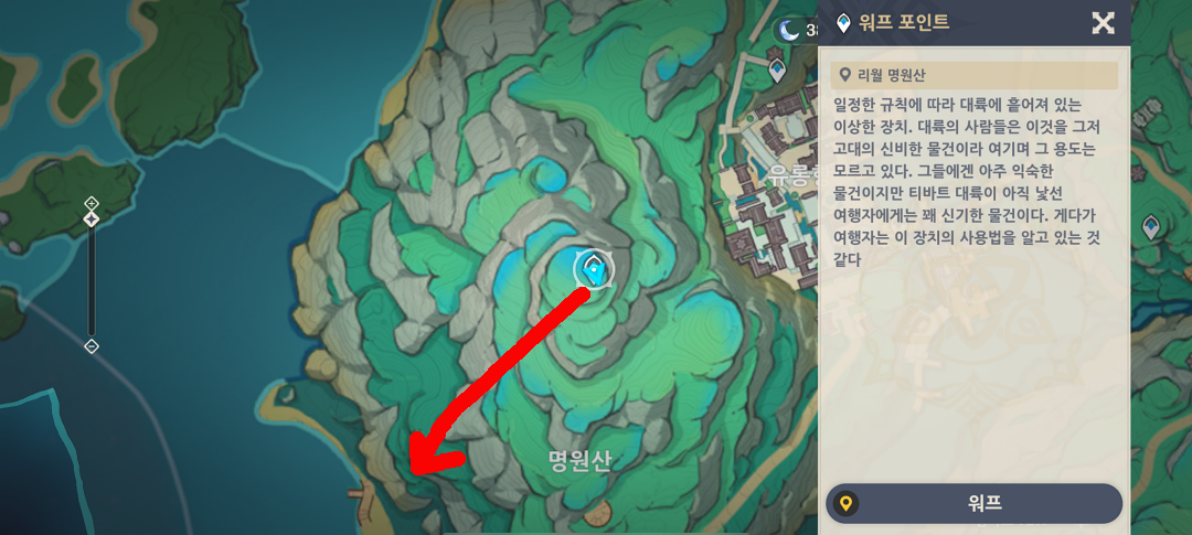 보물상자를 획득했다면 다시 방금 온 명원산 꼭대기의 워프로 이동합니다.
