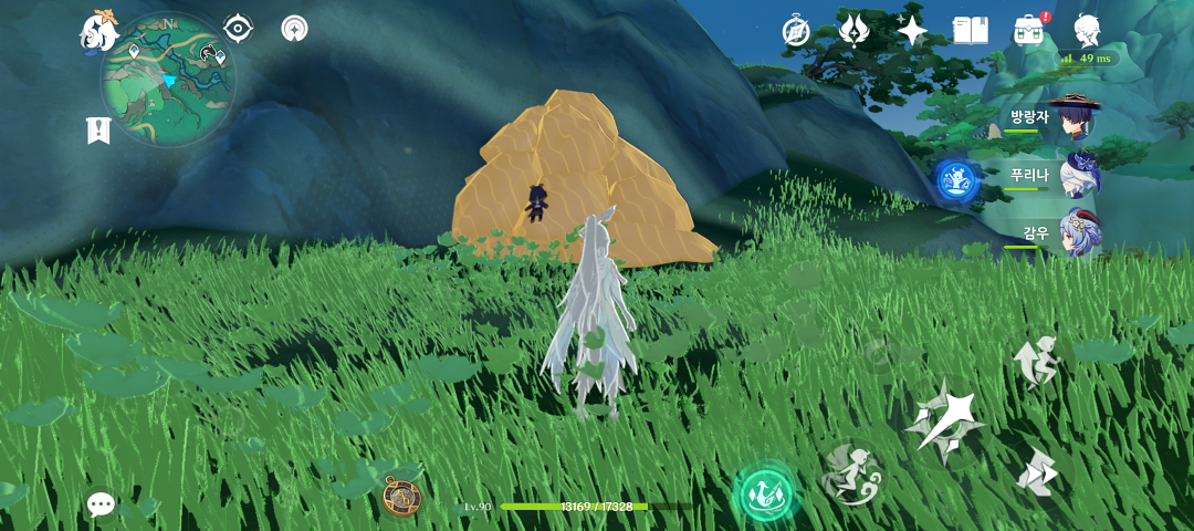 영몽산 아래쪽 워프를 타고 화살표 방향으로 이동합니다. 원소시야를 켜면 바위 오브젝트를 발견할 수 있습니다.