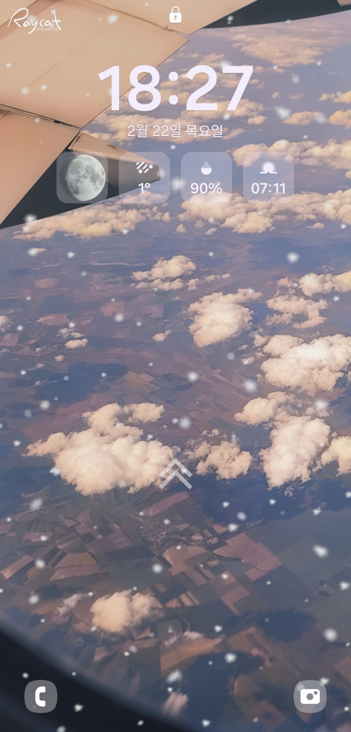 시간대에 따라 배경화면의 사진에 빛도 바뀌기 때문에 화면을 볼 때마다 조금 새로운 느낌도 들고 스마트폰을 켰을때 바로 날씨를 알 수 있습니다.