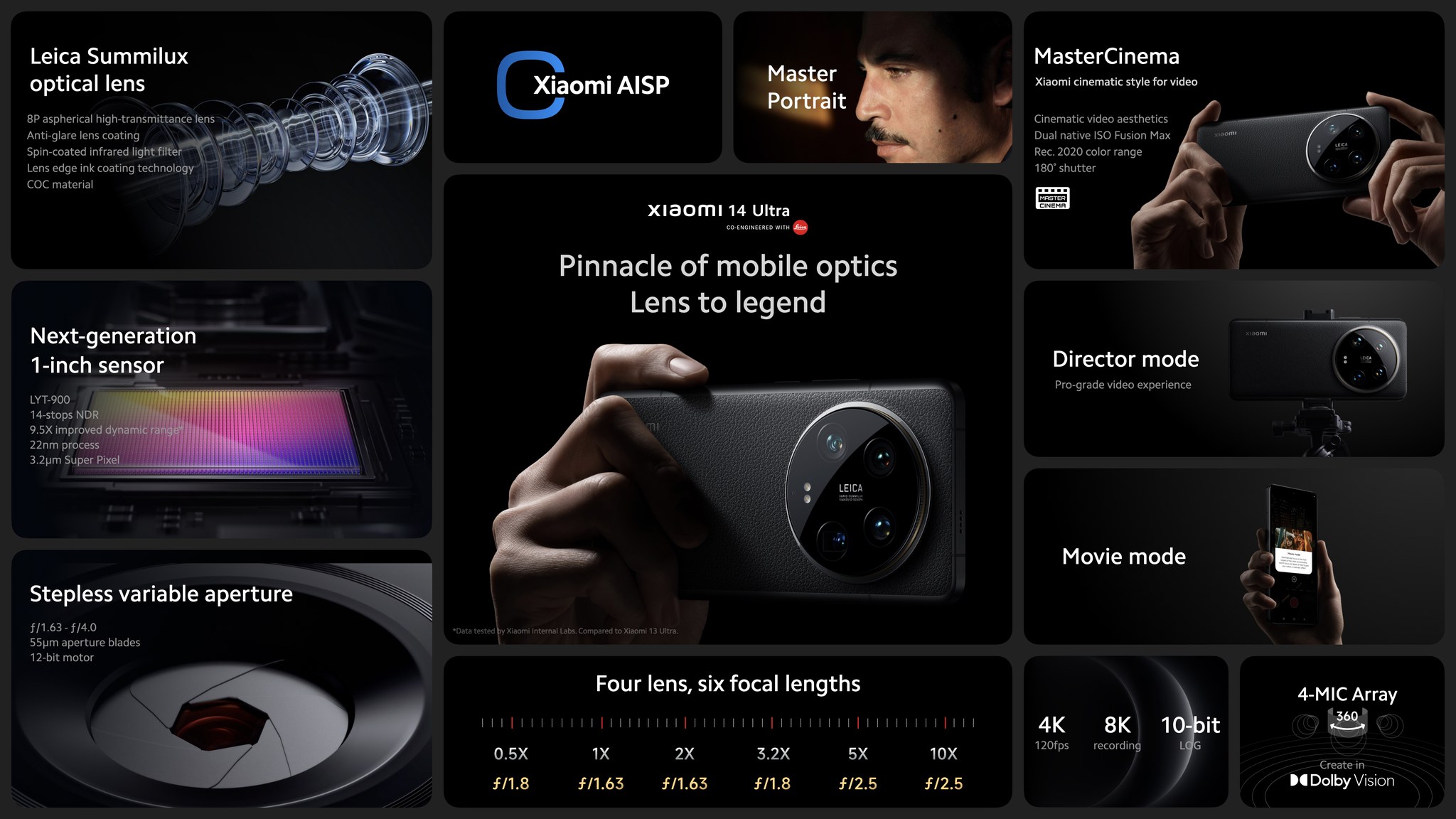 샤오미 14 울트라는 1인치 소니 LYT-900 센서를 탑재하고 f/1.63부터 f/4.0까지 조절할 수 있는 가변 조리개 시스템을 갖추고 있습니다.
