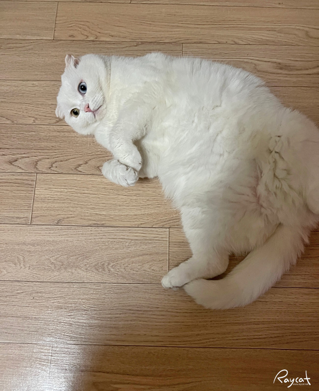 고양이의 경우 보통 하루 일과가 똑같지만 일단 집사가 집에 오면 현관 앞에서 발라당 배를 보이며 반갑다고 인사를 한다.