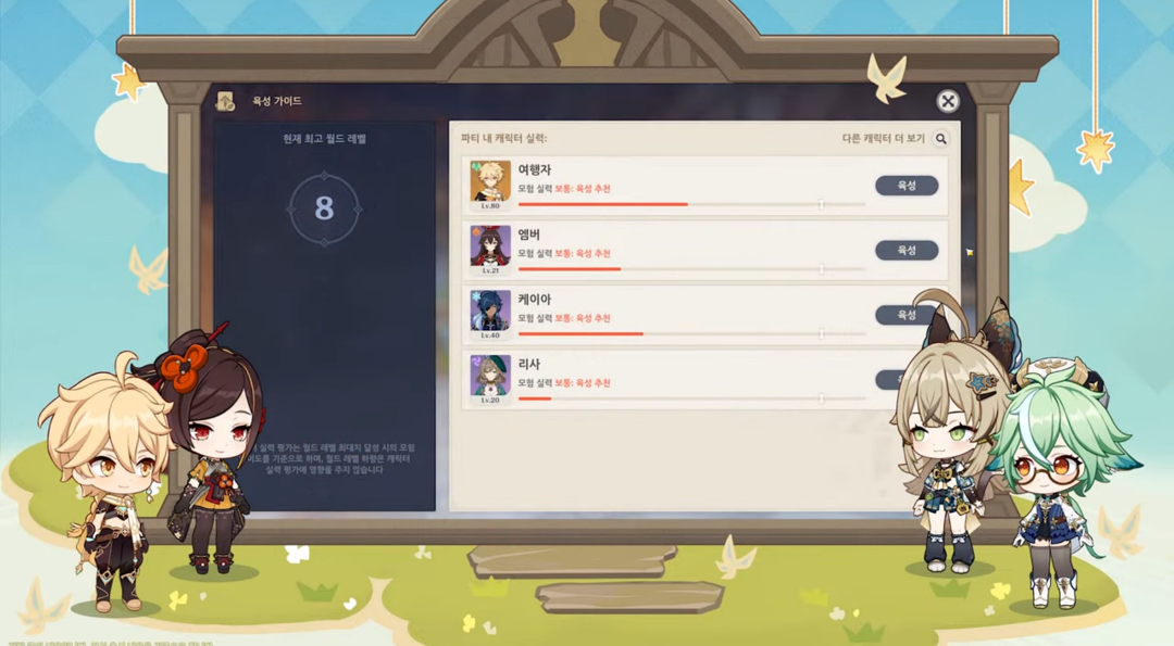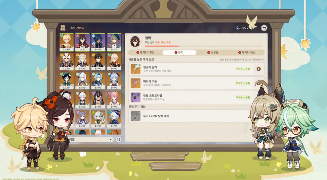 육성 가이드 시스템은 무기, 성유물, 특성까지 통계로 모두 보여주기 때문에 신규 유저들에게 많이 도움이 될 거라 보입니다.