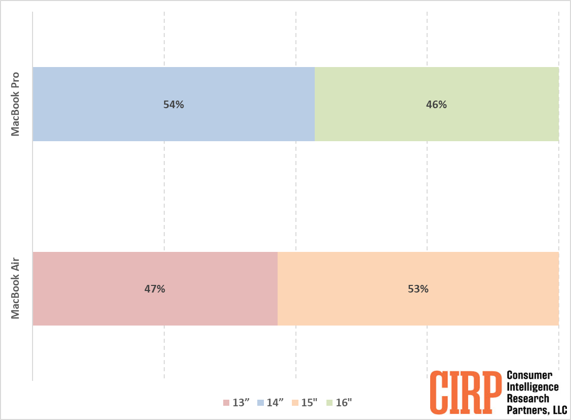 CIRP 보고서를 보면 2023년은 애플의 노트북과 데스크톱의 혼합이 그 어느 때보다 휴대용 기기인 노트북쪽으로 치우쳐 미국 맥 구매자의 90%가 맥북에어와 맥북프로를 선택했다고 합니다.