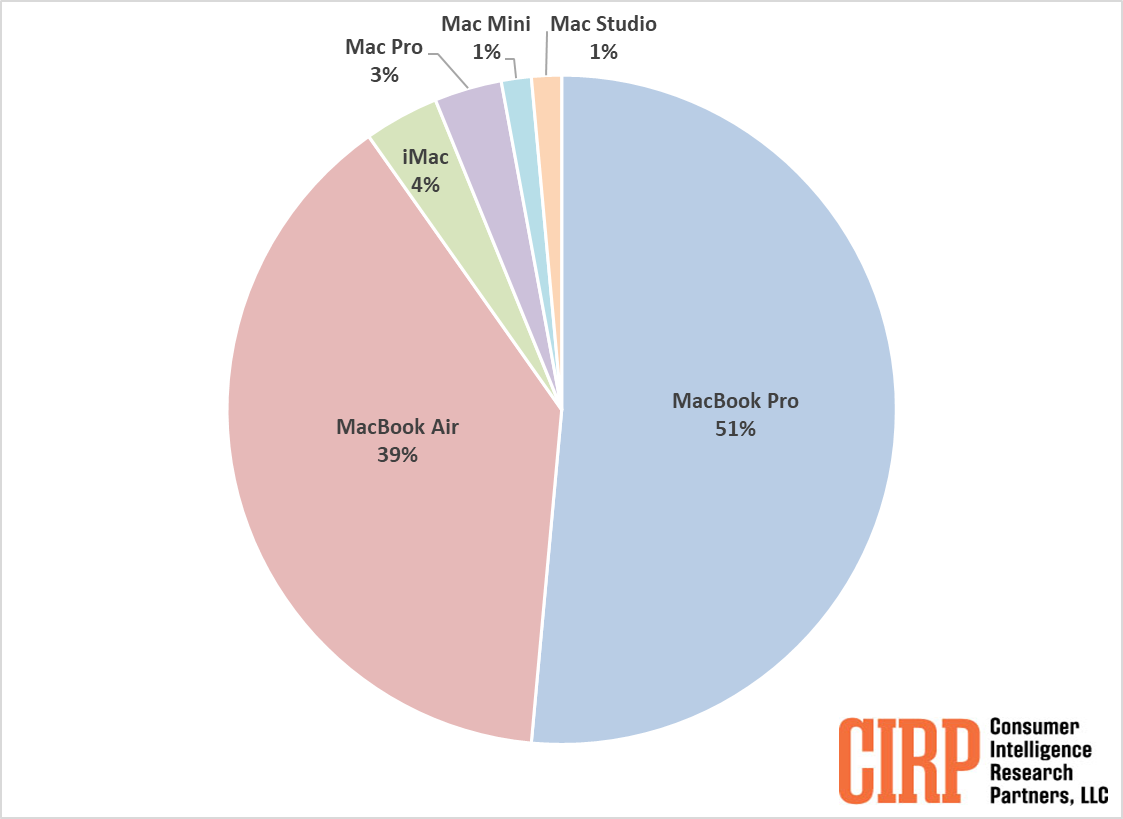 CIRP 보고서에는 2022년과 마찬가지로 맥북프로가 2023년 미국에서 전체 판매량의 51%를 차지하며 가장 인기 있는 맥이었다고 밝히고 있습니다.