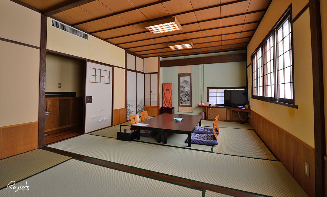 객실은 모두 다다미방으로 에어컨, 미니 냉장고, 옷장에 작은 탁자가 전부이며 저녁에 다다미 위에 이불을 깔아준다.