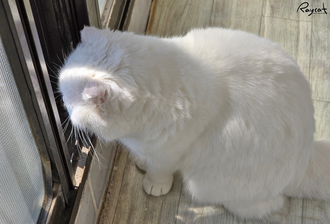 열린 창문틀에 부비부비를 하고 있는 고양이 겨울동안 닫혀있던 창문이 열리니 기분이 좋은지 부비부비를 하며 체취를 남기고 있다.