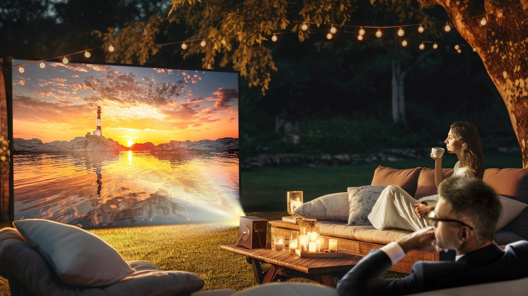 소형이지만 성능을 보면 4K(3,840×2,160) UHD 해상도, 최대 120인치(대각선 길이 약 305cm)의 초대형 화면을 지원합니다.
