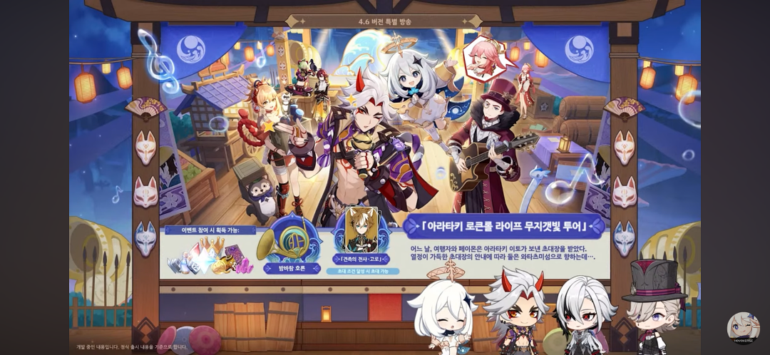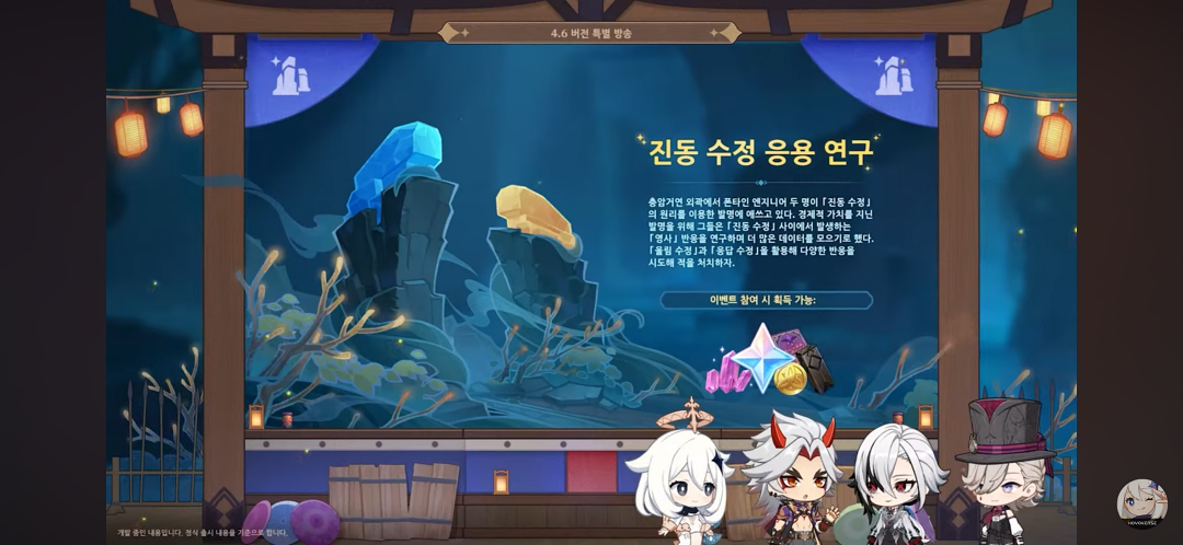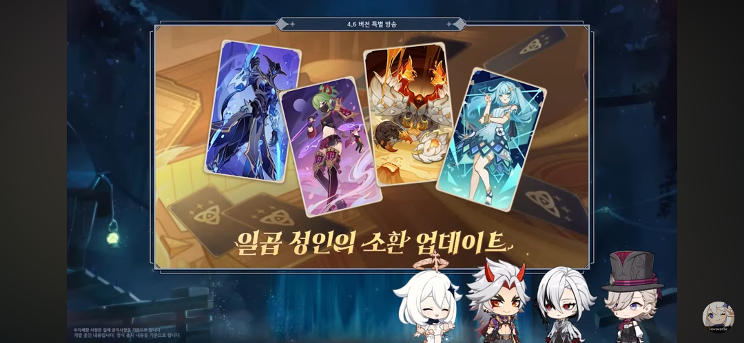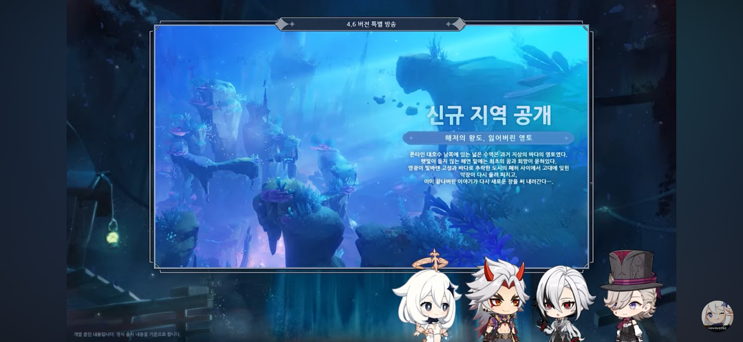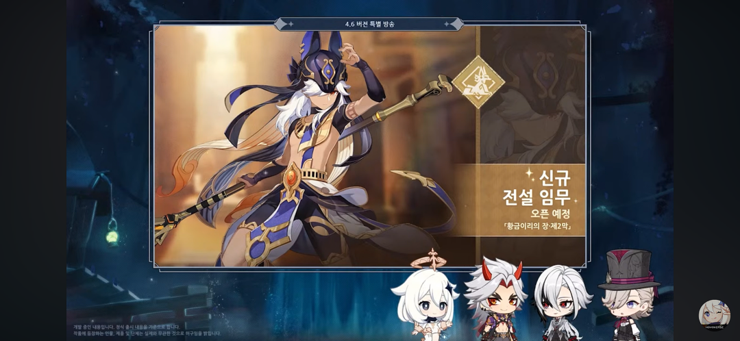 이번 4.5 버전이 너무 할 게 없어서 지루해서 지금 4.6 버전을 기다리고 있는 중이라 이번 원신 4.6 버전 특별방송을 보며 정리해 봤습니다.