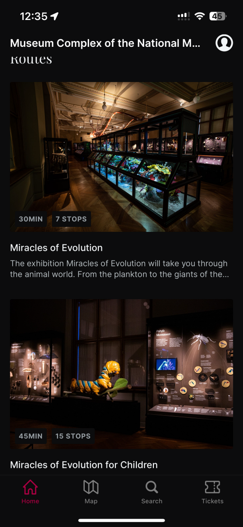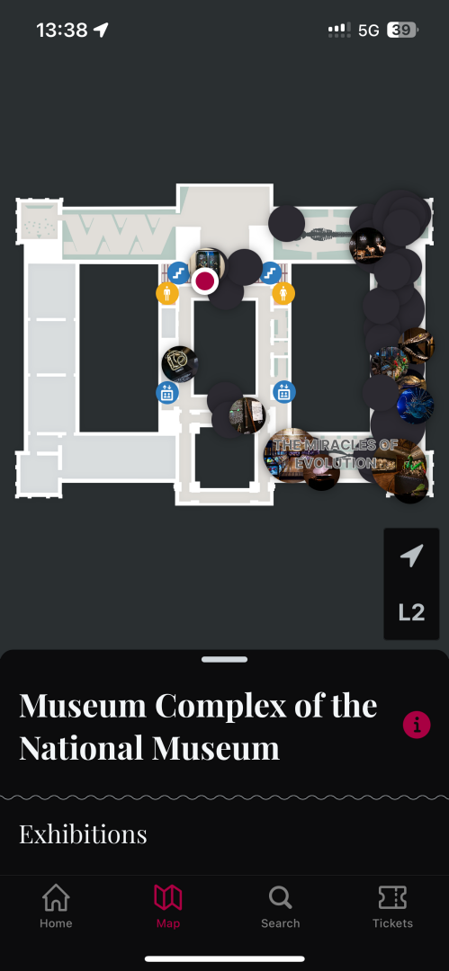 프라하 국립박물관의 규모가 크기 때문에 앱의 맵을 보면 국립박물관내 전시장과 시설물의 위치를 볼 수 있으며 전시물에 대한 간략한 해설이 있습니다.