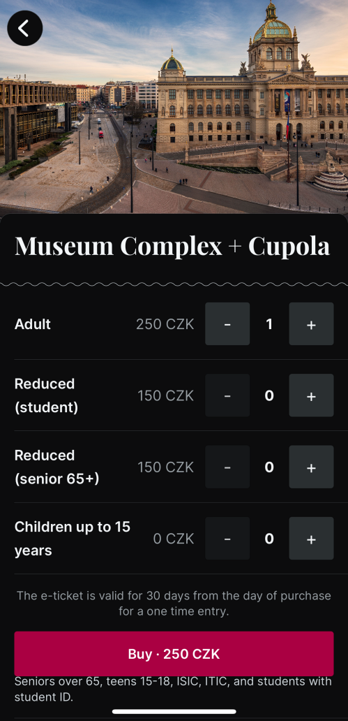 프라하 국립박물관은 프라하 비지터 패스(Prague Visitor Pass)에 포함되지 않은 관광명소 중 하나로 신시가지의 랜드마크 건축물이며 명소중 하나로 별도의 앱으로 매표소에서 티켓을 구매하지 않고 앱으로 돌아볼 수 있는 관광지중 하나입니다.