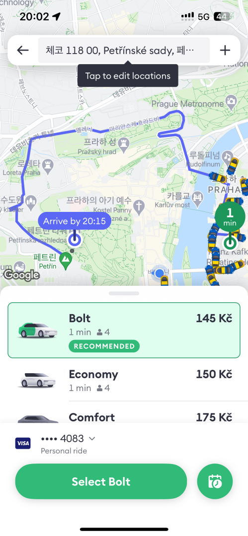 Bolt(볼트) 앱은 아마 유럽을 여행하는 여행자라면 한 번쯤 사용해보지 않았을까 생각하는데 프라하에도 이 볼트(Bolt) 서비스는 택시를 이용할 때 아주 편하게 활용할 수 있습니다.